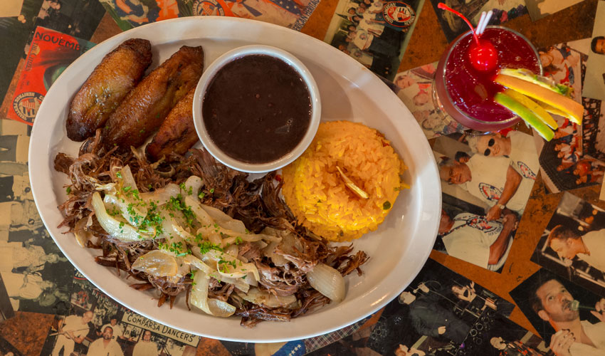One of the most popular entrees in Cuban cuisine is ropa vieja. This stewed shredded beef dish is slow cooked in fresh tomatoes, onions, peppers, garlic and wine to create a mouthwatering meal. And following its origins, the dish is accompanied by white rice, black beans and sweet plantains.